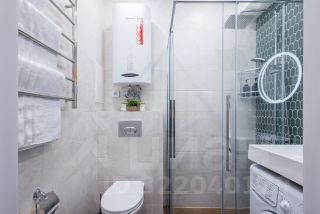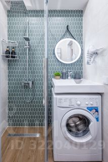 Санузел с душем, стиральной машиной, водонагревателем.