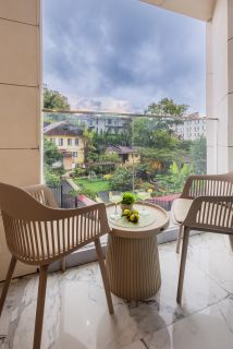 Балкон с мебелью и видом на улицу