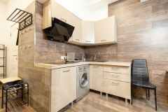 — Санузел: Современный санузел с душевой кабиной, стиральной машиной и феном.