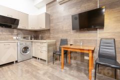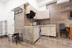 — Кухня-гостиная: Современная кухня оснащена всем необходимым для приготовления и сервировки пищи, включая индукционную плиту и микроволновую печь.