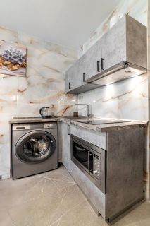 В нашем уютном жилье вы найдете просторную кухонную зону, укомплектованную гарнитуром, техникой и полным набором посуды на четыре персоны, что позволяет готовить любимые блюда. Удобный раскладной диван в спальной зоне обеспечит вам комфортный отдых и хороший сон. Это идеальное место для семейного отдыха или дружеских встреч.