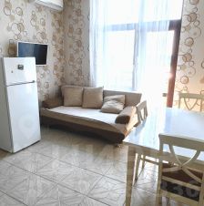 Классная двухкомнатная квартира, удобная и довольно просторная! Красивый вид на город и море. Расположена на 4-м этаже в современном новом доме элитного класса с закрытой территорией и консьержем. Спальная комната с телевизором, кондиционером, большой двуспальной кроватью и выходом на балкон. Имеется все необходимое, подушки, одеяла, постельное белье. Кухня совмещена с залом, в котором есть телевизор, двуспальный диван, гладильная доска, весь кухонный инвентарь, микроволновка, чайник, а так же выход на балкон. Сан.узел совмещённый, стиральная машинка внутри. Есть фен. Газовый котёл.