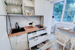 Квартира находится в самом сердце Сочи. Потрясающее расположение позволит вам легко добраться до Красной Поляны, Олимпийского парка на электричке. А также квартира будет удобна туристам, кто путешествует на личном авто - рядом есть две платные парковки.