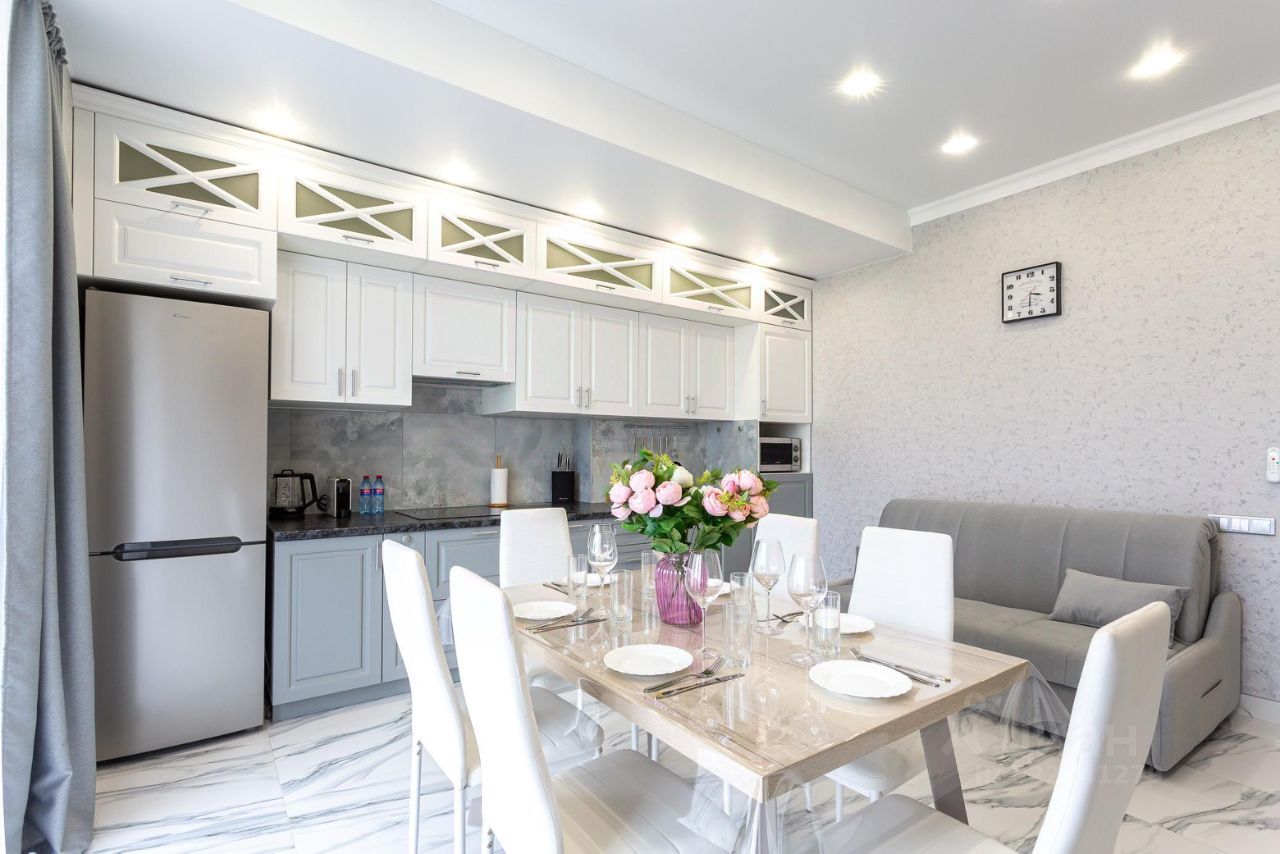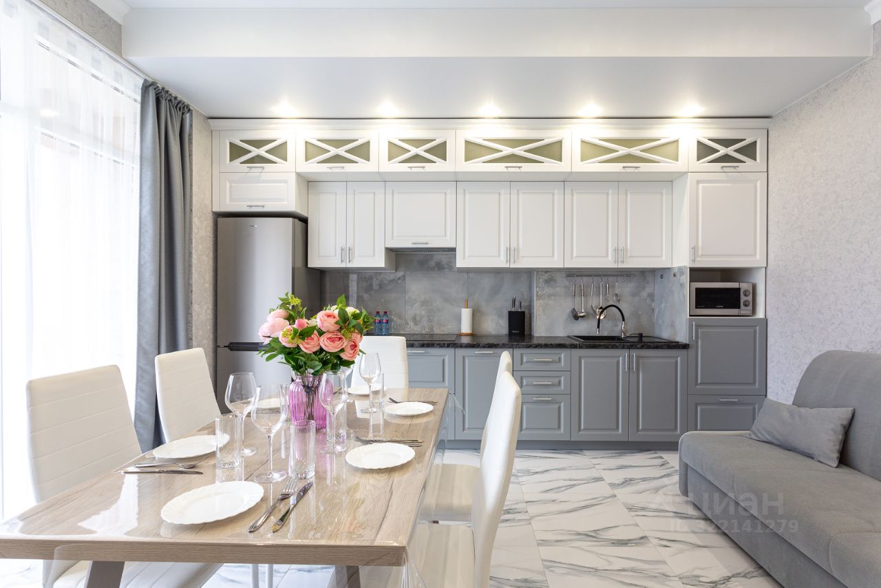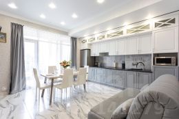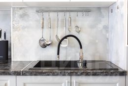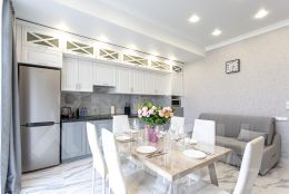 — Холодильник, микроволновая печь, индукционная плита, кофемашина, чайник, вытяжка.