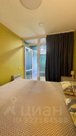Квартира в 2х ярусах. 1 этаж гостиная, 2 этаж спальня, где находятся большая кровать и 2 х спальный диван. На первом этаже тоже огромный диван.