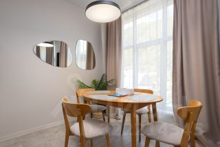Есть всё для комфортного проживания: современное кухонное оборудование, набор посуды и столовых приборов, качественная сантехника. Уборка перед Вашим заселением, постельное белье и полотенца уже включены в стоимость проживания.