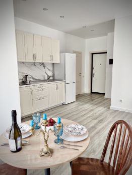 Кухня оснащена: индукционной плитой, большим холодильником, микроволновой печью, чайником, набором посуды. Также предоставим кофе-машину.