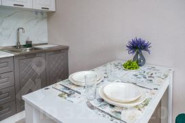 Новая однокомнатная квартира с интерьером в спокойных тонах с выходом к горной реке!