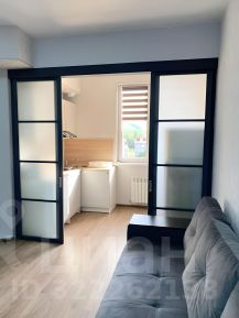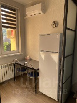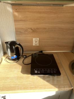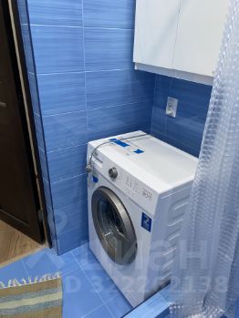 В квартире сделан евроремонт, установлена современная мебель на кухне и в комнате. Из техники есть всё необходимое для комфортного проживания: кондиционер, холодильник, телевизор и стиральная машина. Планировка студии включает совмещённый санузел с душевой кабиной.