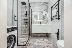 Санузел оборудован душевой с дорогой и качественной сантехникой, стиральной машиной с функцией сушки и феном и роллеров на случай отключения воды.