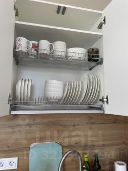 • кухонный гарнитур с плитой, духовкой, вытяжкой и фильтром для воды (чистая вода прямо из крана)