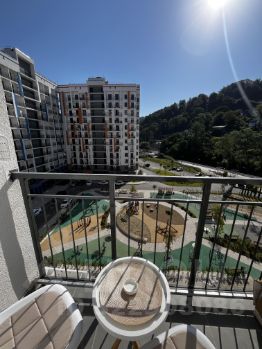 Квартира с дизайнерским ремонтом и полностью обставлена мебелью, что создаёт современную и комфортную атмосферу. В наличии вся необходимая техника: кондиционер, холодильник, телевизор и стиральная машина. Санузел совмещённый, оборудован душевой кабиной. вид на горы и набережную.