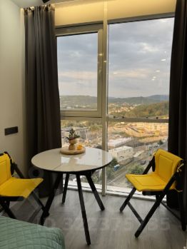 Сдаётся стильная студия площадью 25 кв. м в новом доме на Ясногорской улице, в микрорайоне Бытха, Сочи. Квартира расположена на 9 этаже 16-этажного здания, построенного в 2023 году. Из окон открывается вид на горы, а в доме есть пассажирский и грузовой лифты, что удобно для переезда и ежедневного использования.