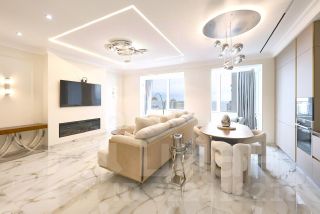 Просторная планировка 100 м² с изысканным дизайнерским ремонтом и захватывающим видом на морское побережье.