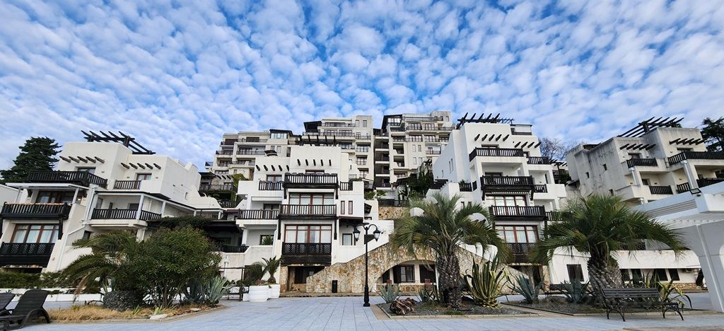 Комплекс Caнтopини Kлуб расположен в парковой зоне, на закрытой охраняемой территории, граничит с санаторием Заполярье.