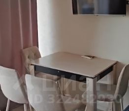 В квартире сделан евроремонт, установлена современная мебель как на кухне, так и в жилой зоне. Для комфортного проживания есть вся необходимая техника: кондиционер, холодильник, телевизор и стиральная машина. Планировка студии позволяет удобно разместиться одному или паре. Совмещённый санузел выполнен в светлых тонах и оборудован современной сантехникой.