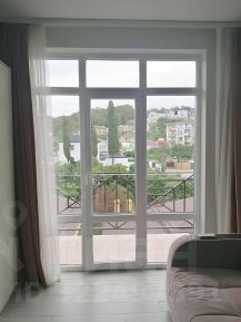 Светлое помещение имеет панорамные окна и балкон с видом на горы. Санузел совмещенный, со всеми необходимыми удобствами — душ, умывальник и туалет.