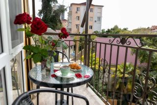 Современная студия расположена в самом центре г. Сочи, в 10 мин ходьбы от берега Черного моря. В шаговой доступности находятся известные достопримечательности: Дендрарий, Зимний и Летний театры, Морпорт, а также парки, рестораны, кафе, столовые, магазины, банкомат, остановка общ-го транспорта. Студия находится на частной, закрытой территории, с благоустроенным и озелененным двором, есть зона барбекю и беседка.
