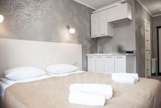 В номере имеется кухня для самостоятельного приготовления еды. Есть wi-fi.