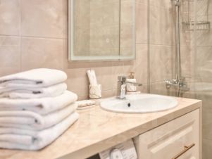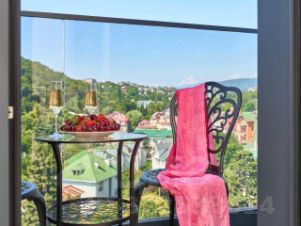 Стильный современный ремонт и мебель. Двуспальная кровать, TV, Wi-fi, кондиционер. Панорамное остекление, на балконе есть мебель для приятного время препровождения. Кухня оснащена: плитой, микроволновкой, холодильником, чайником, столовыми приборами и посудой. Также есть стиральная машина, фен, утюг, сушилка для белья. Вместительная гардеробная.