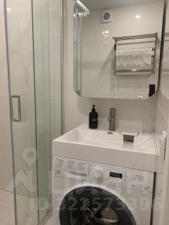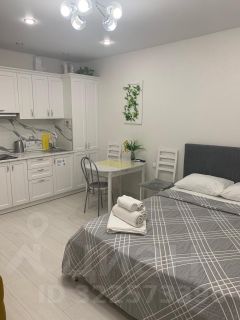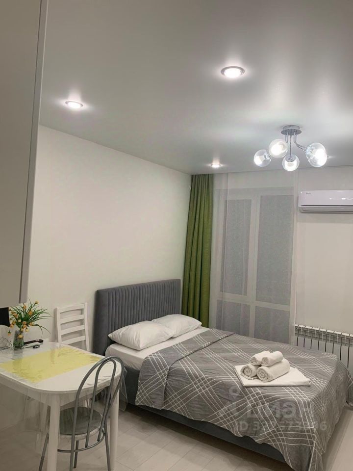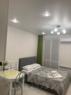В студии выполнен современный евроремонт, установлена вся необходимая мебель как в комнате, так и на кухне. Из техники есть кондиционер, холодильник, телевизор и стиральная машина. Планировка продумана до мелочей — совмещённый санузел оборудован душевой кабиной. Окна выходят во двор, поэтому в квартире тихо и спокойно. Доступен интернет для работы и развлечений.