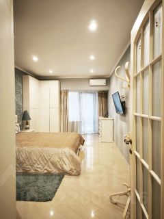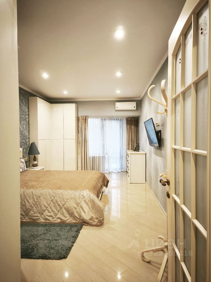 Спальня: Уютная комната с двуспальной кроватью, телевизором и шкафом-купе. Выход на открытую лоджию с видом на море.