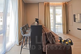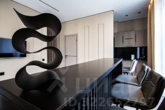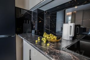 Также на кухне имеется плита, чайник, холодильник, СВЧ-печь, вся необходимая посуда для приготовления и сервировки пищи, барная стойка, стулья.