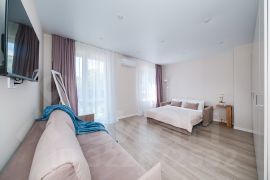 Новая просторная полноценная однокомнатная квартира с интерьером в спокойных тонах с выходом к горной реке!
