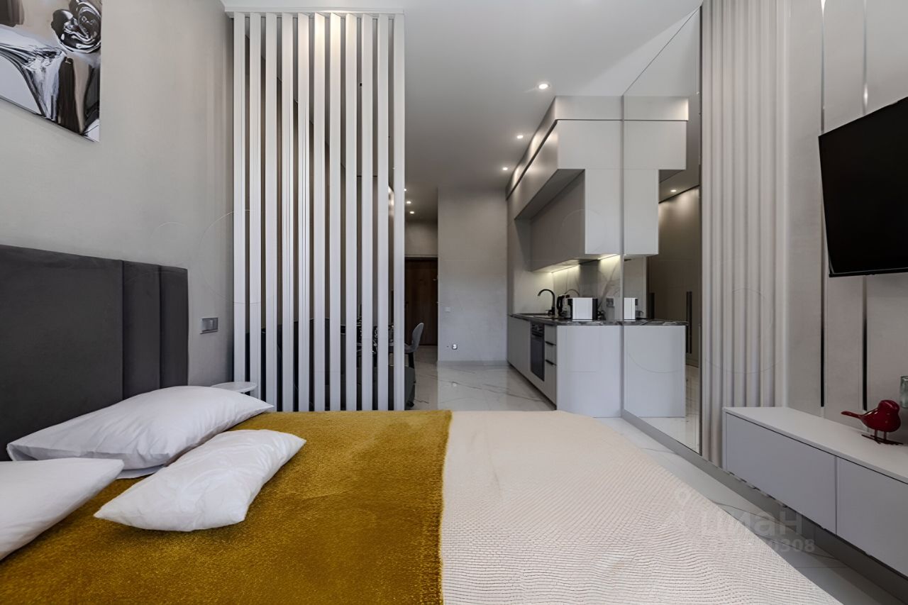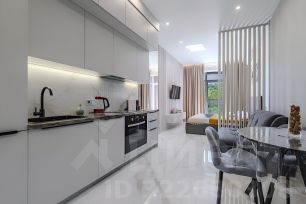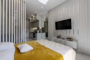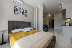 Студия на 12 этаже современного дома с балконом и видом на улицу. С абсолютно новым дизайнерским ремонтом. В квартире предусмотрено все необходимое для комфортного проживания: холодильник, стиральная машина, телевизор с кабельным/цифровым ТВ. Просторная кухня оборудована современной техникой и обеденной зоной. Ванная комната выполнена в стильном дизайне с душевой кабиной и качественной сантехникой.
