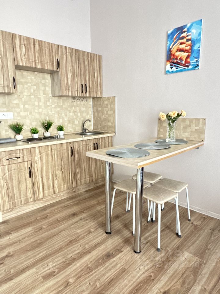 Распланирована в 4-ех местную студию . Возможно размещение до 3-4 человек.