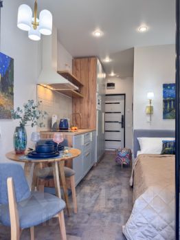Вангог - стильная студия - Территория комплекса огорожена и оснащена достаточным количеством парковочных мест, детскими и спорт площадками, а так же зонами отдыха с лежаками и беседками. Место, где мечты об отдыхе воплощаются в образ жизни. Это жилой комплекс бизнес-класса, расположенный на северном склоне горы Бытха на улице Ясногорской. Здесь соединяются свежий морской воздух и аромат хвои предгорья. При этом до центра Сочи всего 7 минут на автомобиле .
