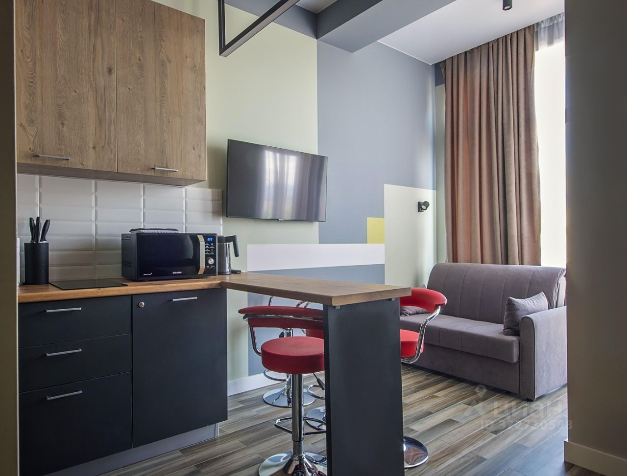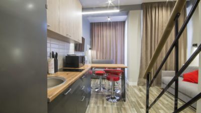 Стильная двухуровневая студия с дизайнерским ремонтом находится в ЖК Грин Сейл Парк с собственной закрытой территорией и детской площадкой.