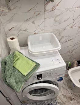 - стиральная машина, утюг, гладильная доска, фен, постельное белье.