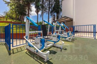 Огромная охраняемая территория с подсвечиваемыми тропинками, где можно прогуляться вечером.