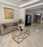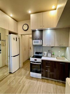 В квартире сделан дизайнерский ремонт, что придаёт ей современный и стильный вид. Все необходимое для комфортного проживания уже есть: на кухне и в комнате установлена мебель, а техника включает в себя кондиционер, двух камерный большой холодильник, телевизор и компактную стиральную машину. В совмещенном санузле установлена душевая кабина, что добавляет удобства.