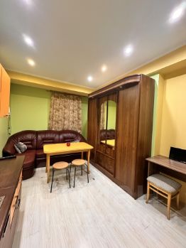 Большая кухня гостиная с диваном, отдельная спальня.