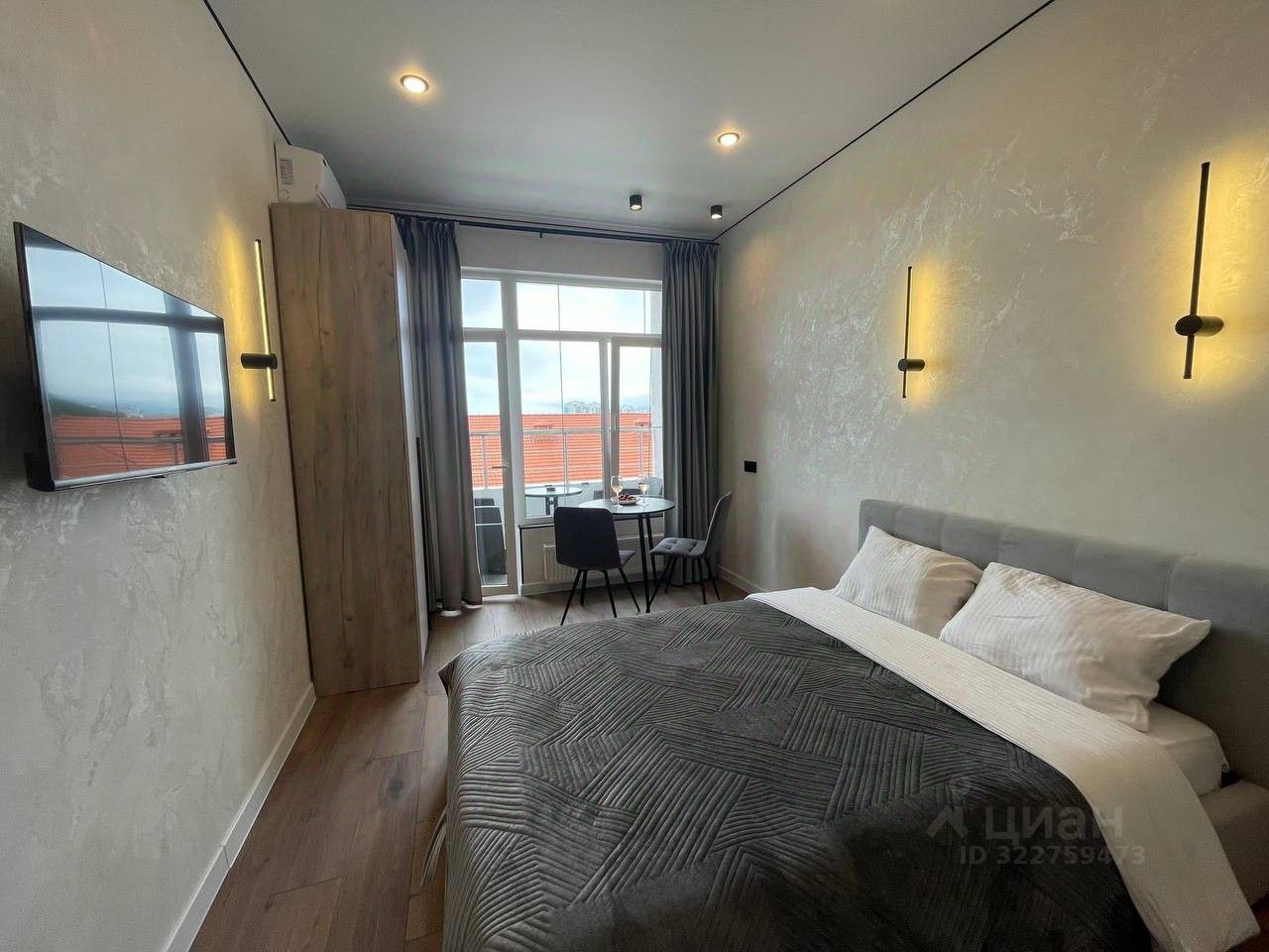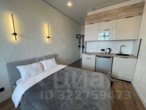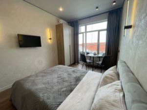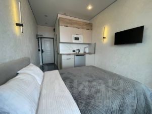 Уютная студия в современном доме с полноценной кухней и просторным балконом.Тихий район, приятный вид — особенно красиво на закате.