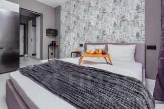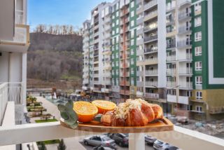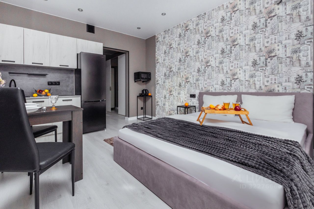 В квартире выполнен дизайнерский ремонт, что придаёт ей особый шарм и уют. В комнате и на кухне есть вся необходимая мебель для вашего удобства. Для комфортного проживания установлена современная техника: кондиционер, холодильник, телевизор и стиральная машина. Ванная комната оснащена ванной, что позволяет расслабиться после долгого дня. Окна выходят во двор, поэтому в квартире тихо и спокойно.