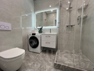 Совмещённый санузел с душевой, стиральной машиной, феном.