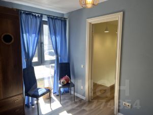Прихожая , кухня-гостиная , санузел , балкон с мебелью с видом на территорию комплекса