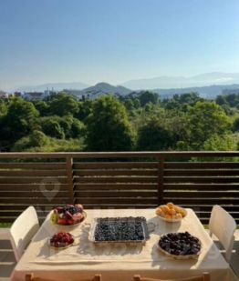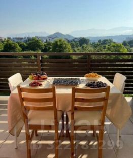 Кухонный гарнитур с холодильником, варочной панелью и духовым шкафом. Телевизор Аррlе ТV, Стиральная машина. Просторный балкон с видом на горы.