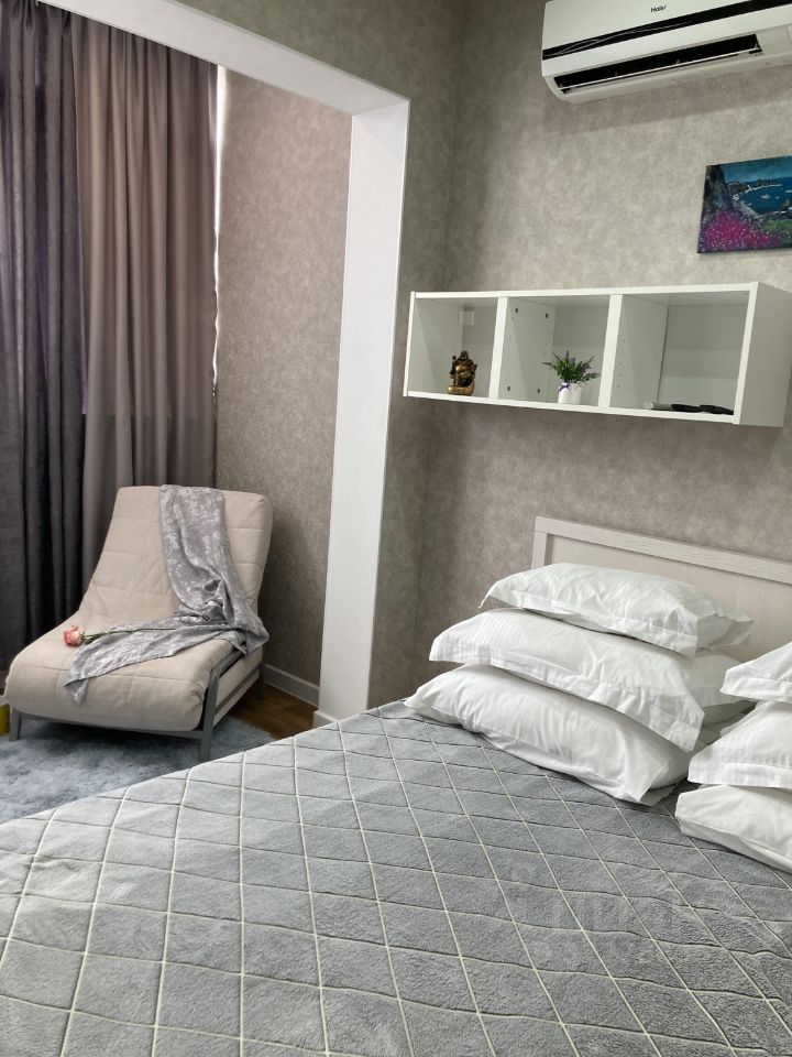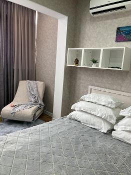 В квартире сделан косметический ремонт. Здесь есть вся необходимая мебель как на кухне, так и в комнате, что позволяет сразу заселиться и комфортно жить. Из техники в вашем распоряжении кондиционер, холодильник, телевизор и стиральная машина. Санузел совмещенный, оборудован ванной. Подключен интернет, поэтому вы всегда будете на связи.
