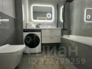 Совмещённый санузел с ванной, стиральной машиной, феном.