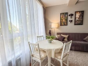До городского пляжа (возле Цирка) можно дойти прогулочным шагом за 15 минут или проехать две остановки на городском автобусе (остановка перед домом).