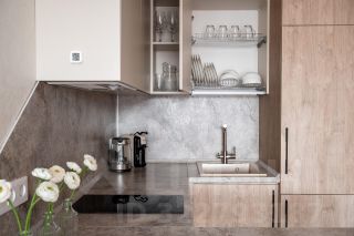 — Чайник, кофемашина, микроволновая печь с функцией духового шкафа, варочная панель, вытяжка, холодильник