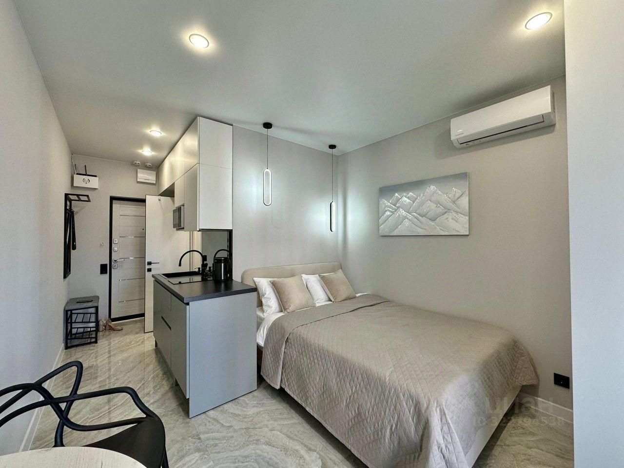 Сдается студия 18 кв.м., расположена на 7 этаже с видом во двор в новом, современном ЖК "Кислород " в микрорайоне Бытха г. Сочи.