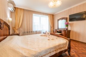 В квартире сделан евроремонт, поэтому всё выглядит современно и стильно. Просторная кухня площадью 12 кв. м полностью оборудована мебелью и техникой: холодильник, кондиционер, стиральная машина и телевизор. В комнате также есть вся необходимая мебель для комфортного проживания. Санузел совмещенный и оборудован ванной. Балкон с видом на море станет отличным местом для отдыха на свежем воздухе.