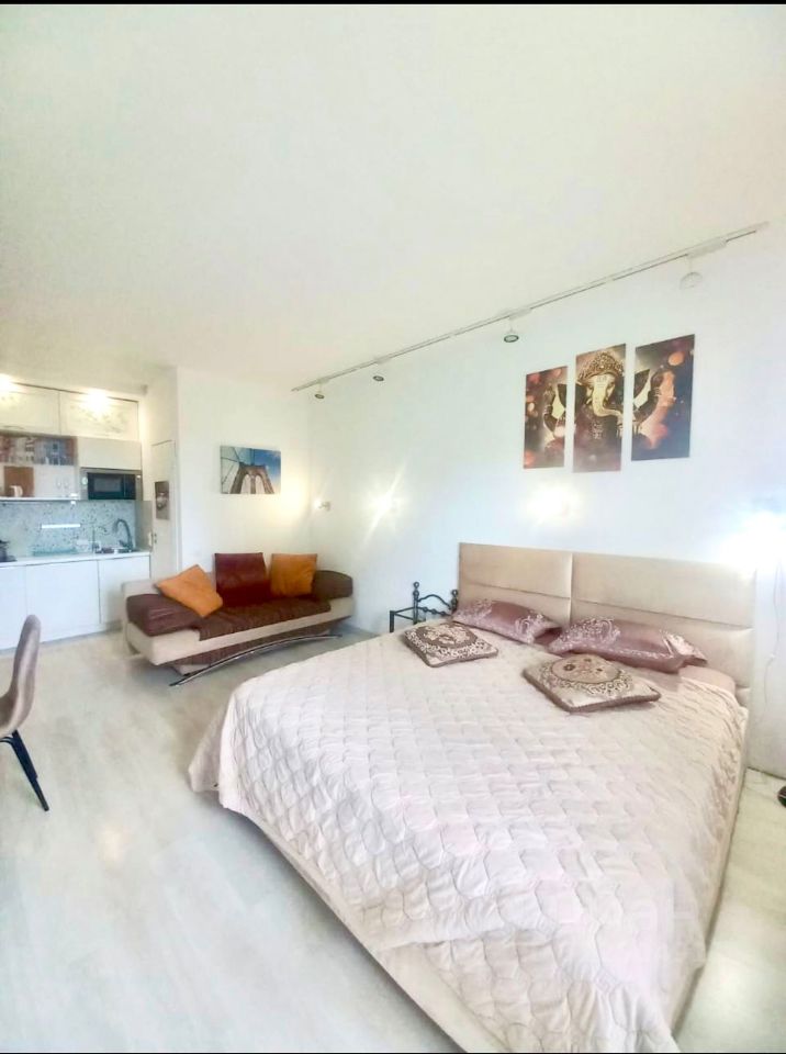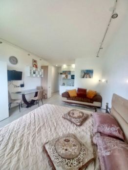 Квартира полностью готова к проживанию: выполнен евроремонт, установлена современная мебель как на кухне, так и в комнате. В наличии вся необходимая техника: кондиционер, холодильник, телевизор и стиральная машина. В ванной комнате установлена душевая кабина, что обеспечивает комфортные условия для гигиенических процедур.