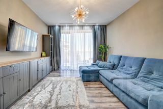 2Изолированная гостевая с панорамным окном ,диван(180*140 ) , журнальный столик, телевизор 55D, пенал на всю стену .