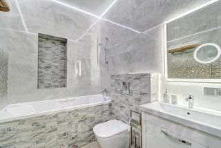 ДВА раздельных сан.узла ( душевая , 2 туалета , ванная, биде , 2 фена , камоды с зеркалами. В одном из них теплый пол )